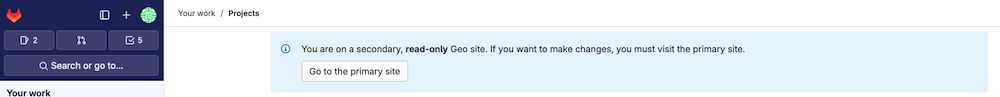 - A working Geo primary site and secondary site, see the Geo setup instructions.